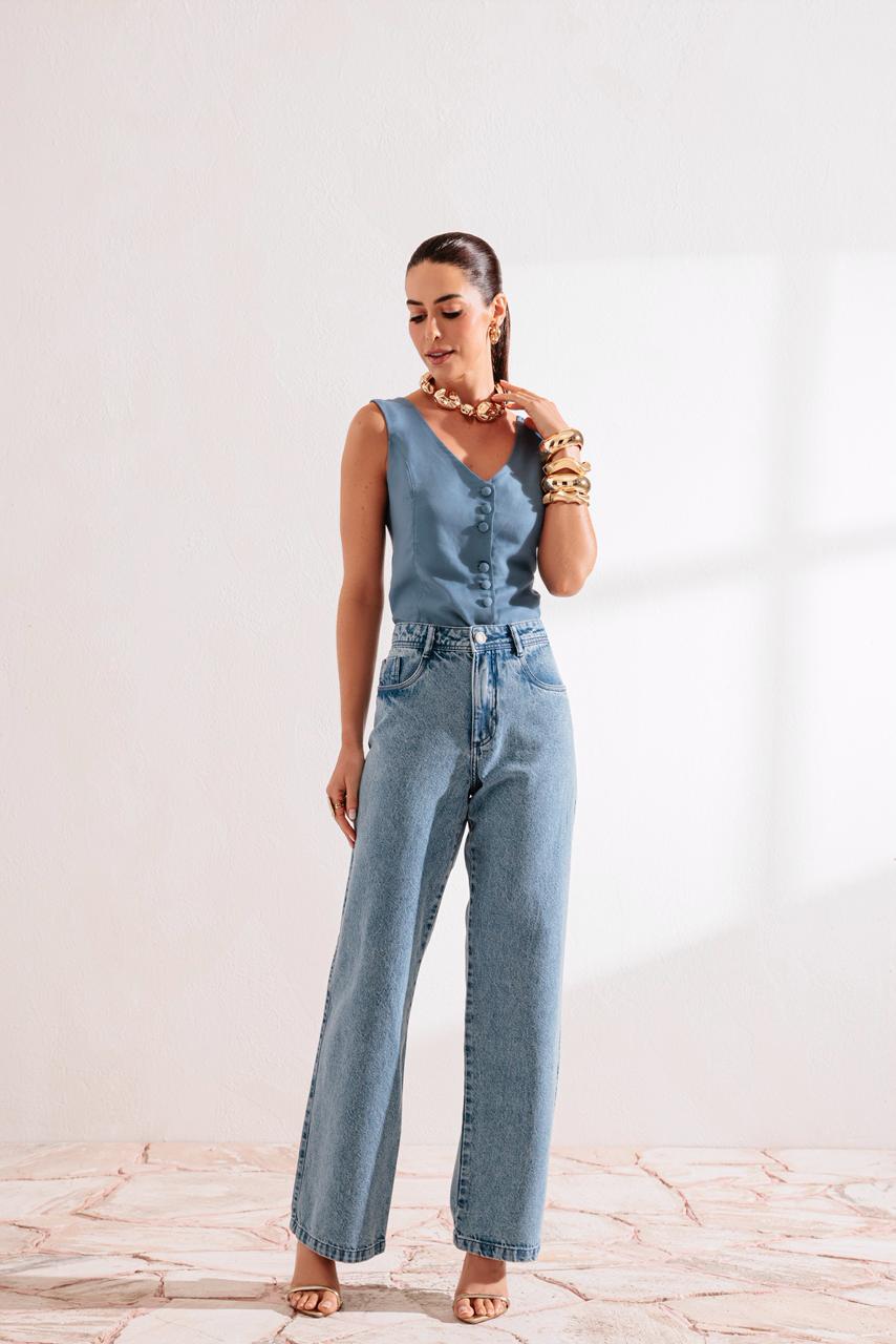 Calça jeans little (para baixas) WIDE LEG
