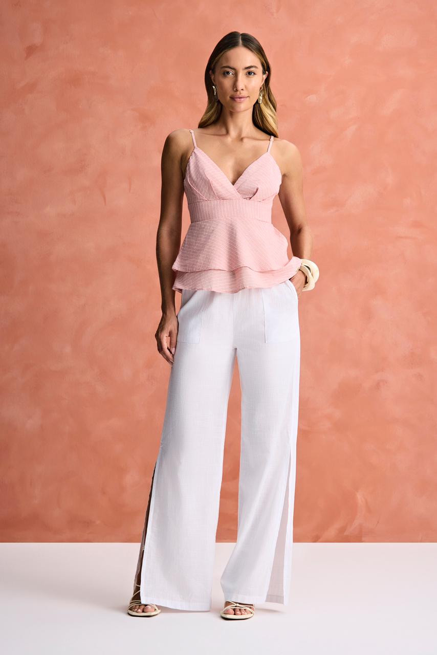 Regata decote transpassado peplum listrado